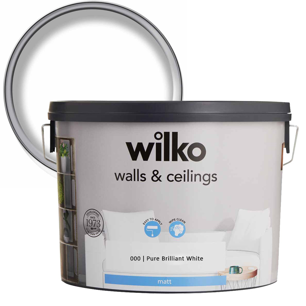 Renovate your home with our Walls and Ceilings Matt Emulsion Paint 10L. Our matt emulsion paint gives you that perfect finish for a modern look. This attractive colour dries in two to four hours and gives a modern, matt finish. This paint covers slight imperfections like lumps or bumps on your wall in just two coats. The contents of this can will cover approximately 140 square metres, which after two coats, is about the same width as 13 small sofas. (Approximate coverage depends on the surface of your walls, see the back of the can for more details). Colours viewed on the screen may not show the same on your walls. To make sure this colour's right for you, we recommend ordering a tester pot or popping into the store to check first. Shade: Pure Brilliant White.
